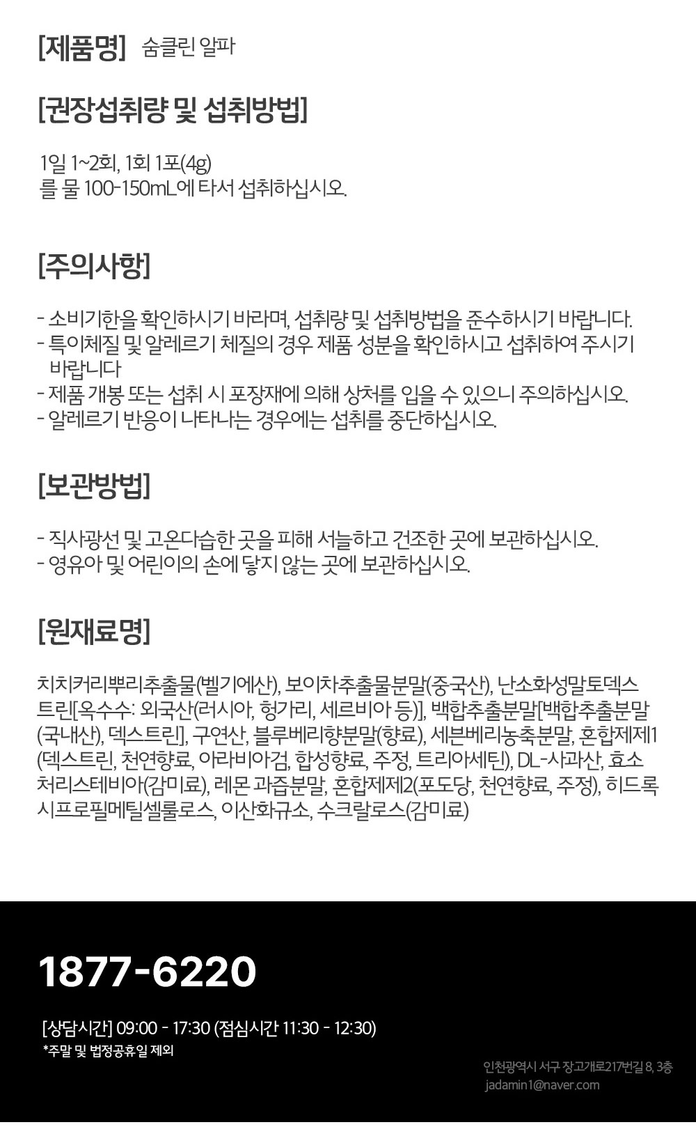 주소 : 인천광역시 서구 장고개로217번길 8 지성빌딩 3층 자담인 대표 : 정용호